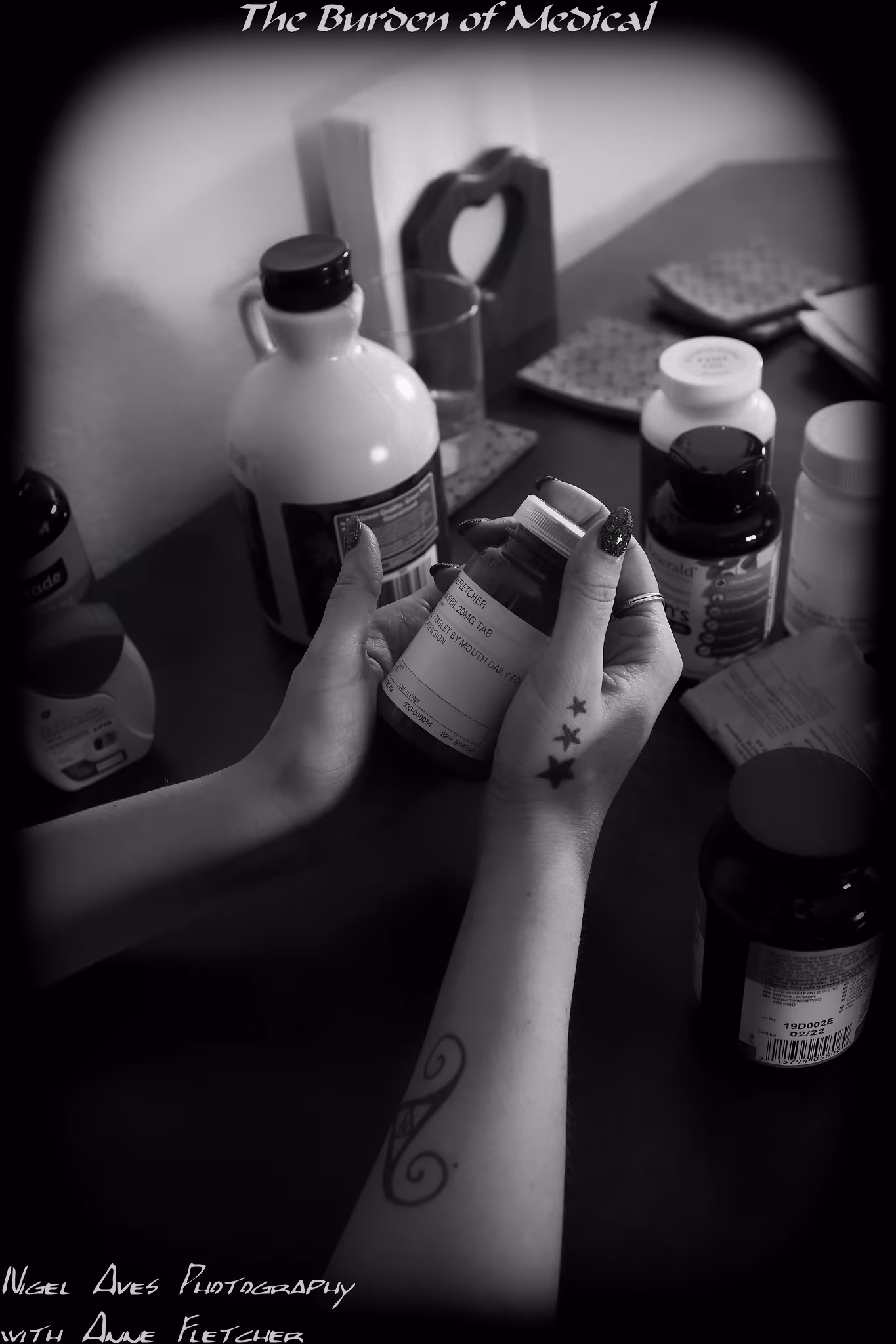 Ann has a long lasting medical issue. These photographs are showing the burden that she is under. Every piece of paper / every drug you see, are all Anne's. Every one!