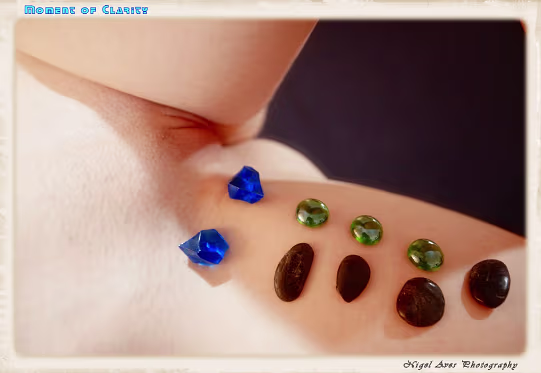 Dusty Devine is photographed with jewels and polished stones. I loved working with Dusty.